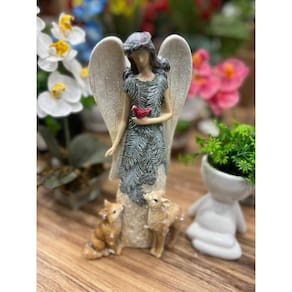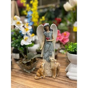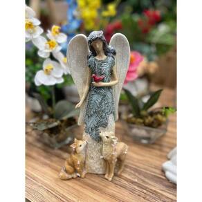 Enfeite natalino em Resina Anjo Com Animais Merry Christimas