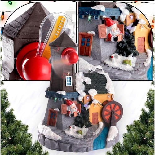 Modelo: casinha moinho musical com leds. - medidas: 22cm x 16cm - material: cerâmica - fonte de energia: 03 pilhas aa.