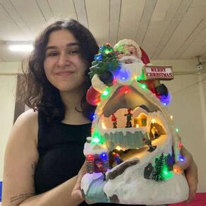 Encante sua casa com esse lindo enfeite do Papai Noel, que carrega uma charmosa árvore de Natal iluminada e um cartaz com os votos de Merry Christmas. A peça traz ainda uma mini vila natalina no interior, com detalhes em movimento, luzes coloridas e brilho encantador que vai conquistar crianças e adultos!