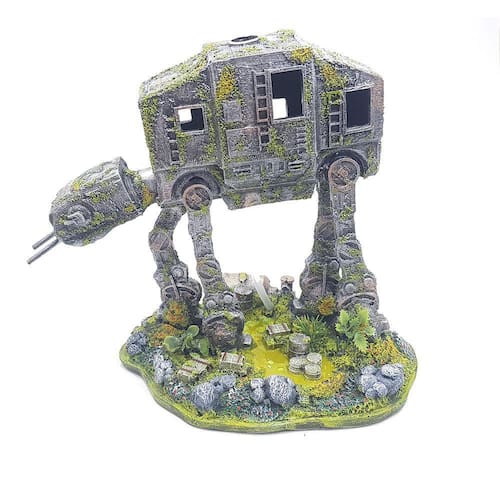 At at star wars At at star warsEnfeite de resina de poliéster para uso submerso em aquários de água doce ou salgada. Material totalmente atóxico, pintura de alta durabilidade e compatível ao meio biológico. Comprimento - 23cm Largura - 15cm Altura - 24cm A tonalidade das cores dos produtos podem variar de acordo com o lote.