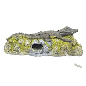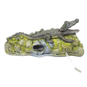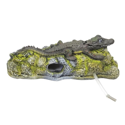 JACARÉ MÓVEL A21 - Jacaré Móvel movimenta com o uso de um compressor de ar simples .Enfeite de resina de poliéster para uso submerso em aquários de água doce ou salgada.Material totalmente atóxico, pintura de alta durabilidade e compatível ao meio biológico.Comprimento - 27 cmLargura - 14 cmAltura - 9 cm A Tonalidade das cores dos produtos podem variar de acordo com o lote.