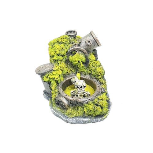 Enfeite de resina de poliéster para uso submerso em aquários de água doce ou salgada. Material totalmente atóxico, pintura de alta durabilidade e compatível ao meio biológico.