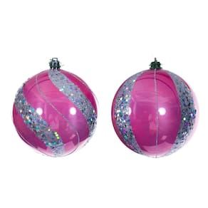 Sortimento de enfeites de bola de lantejoulas rosa Pink Pearl Vickerman de 4 polegadas. 3 padrões diagonais e 3 verticais de glitter.