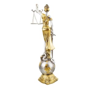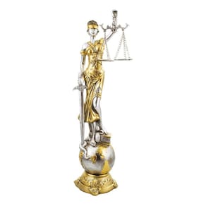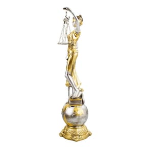 Este é um enfeite decorativo autêntico, representando a Dama da Justiça na cor dourada, posicionada sobre um globo. A peça, produzida pelo fabricante Taimes, tem uma altura total de 41 cm. O material utilizado na sua fabricação é a resina, que confere à peça uma resistência e durabilidade excepcionais. As dimensões da peça são de 11x11x41 cm, tornando-a uma peça de tamanho considerável que certamente chamará a atenção em qualquer ambiente. O peso da peça é de 620 gramas, o que a torna fácil de manusear e posicionar. O modelo é a Dama Da Justiça No Globo Resina Têmis Deusa Direito 41 Cm, uma representação artística da deusa da justiça, Têmis. A temática da escultura é a Dama da Justiça, um símbolo universal de justiça e equidade. Esta é uma peça decorativa, perfeita para decorar escritórios de advogados, salas de tribunal ou mesmo a sua casa. A peça vem com uma base, o que facilita a sua colocação em qualquer superfície plana.