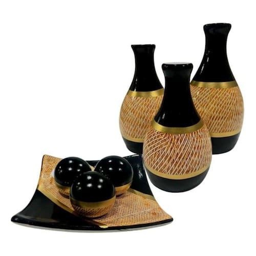 Enfeite Sala Cerâmica Mesa Decorativo CoresEspecificaçõesTrio de vasos pequeno LeticiaPequeno 15cm x 8cmMédio 17cm x 9cmGrande 19cm x 9cmTrio de vasos pequeno ImperialPequeno 18 cm x 8cmMédio 21 x 8cmGrande 24cm x 9cmTrio de vasos pequeno GominhoPequeno 15 cm x 8cmMédio 17 x 9cmGrande 19cm x 10cmTrio de vasos pequeno CristalPequeno 14,5 cm x 8cmMédio 16,5cm x 8cm-grande 19cm x 9cmTrio de vasos pequeno JarraPequeno 16cm x 8cmMédio 19cm x 9cmGrande 21cm x 9cmFruteira MediaFruteira: 21 cm x 21 cmEsferas : 9 cm x 9 cmBarca pequenaBarca: 26cm x 10cmEsferas : 7cm x 7cm