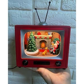 Esta Televisão Natalina nostálgica e decorativa é um verdadeiro espetáculo em miniatura que vai aquecer corações e encantar todos os olhares!
