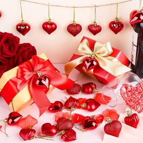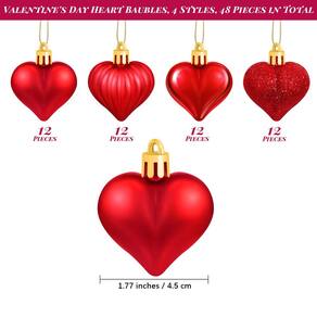 Especificações: Material: plástico Tamanho: 1,77 polegadas / 4,5 cm Cor: vermelho O pacote inclui: 48 bolas em forma de coração. Dicas importantes: Pode haver diferença de cor devido a diferentes monitores. Confirme o tamanho cuidadosamente antes de comprar - O que você receberá: você receberá 48 peças de enfeites vermelhos em forma de coração, e estas bugigangas em forma de coração vêm com superfícies brilhantes, foscas, brilhantes e listradas horizontalmente, em um total de 4 estilos diferentes; você pode escolher de acordo com suas preferências; cada bugiganga em forma de coração mede 4,5 cm - Modelagem: ornamentos em forma de coração são projetados para atender às decorações do Dia dos Namorados, Natal ou Ano Novo, criando uma atmosfera romântica de feriado; os estilos delicados e requintados são adequados para a maioria das decorações de férias - Ocasiões aplicáveis: esses ornamentos em forma de coração podem ser pendurados em árvores de Natal, escadas, lareiras, janelas ou como decorações de mesa, e quando combinados com velas ou luzes coloridas, o efeito de refinamento era muito mais óbvio - Fácil de montar: há 1 cordão dourado na parte superior de cada enfeite de coração do Dia dos Namorados, que é conveniente para pendurar e não é fácil de cair; também fornecemos 1 caixa de plástico para facilitar a classificação e armazenamento - Qualidade premium: estes enfeites de Dia dos Namorados são feitos de plástico de alta qualidade, inodoro e não tóxico, forte e durável, não é fácil de ser danificado e não é fácil de desbotar, leve e de tamanho certo, para que as bugigangas dos namorados possam ser usadas por um longo tempo