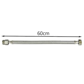 Utilização: Para água fria ou quente Composição Básica: Liga de cobre, aço inox e plásticos de engenharia Material: mangueira interna EPDM esp. 2,3mm Malha externa Aço Inox Comprimento: 60cm Suportam pressão de até 100 PSI ou 70 m.C.A Temperatura máxima: 95C