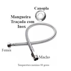 Engate Mangueira Flexível Trançado Aço Inox 60cm água quente e fria O engate flexível em aço inox da Blufershop é um componente versátil e durável amplamente utilizado em diversas aplicações industriais e comerciais. Fabricado com precisão a partir de aço inoxidável de alta qualidade, esse dispositivo é projetado para oferecer resistência à corrosão, longa vida útil e flexibilidade em suas aplicações. Ele é projetado para proporcionar conexões seguras e confiáveis entre diferentes componentes, minimizando vazamentos e garantindo o fluxo suave de líquidos ou gases. Sua construção flexível permite que o engate seja facilmente conectado a diferentes tipos de equipamentos e sistemas, adaptando-se às necessidades específicas de cada aplicação. O engate flexível da Blufershop é um componente versátil, resistente e confiável que desempenha um papel fundamental em uma ampla variedade de aplicações industriais e comerciais, contribuindo para a eficiência e segurança desses sistemas. - Alta Pressão - Alta Durabilidade - Para água quente e ou água fria - Malha trançada de aço inox - Compatível com diversas aplicações - Tubo interno de EPDM - Terminais de conexão e canopla em aço inoxidável - Temperatura máxima de trabalho 80ºC - Pressão de trabalho 80 mca - Marca: Blufershop - Comprimento - 40 cm - Conexão de Entrada - 1/2 - Conexão de saída - 1/2 - Conexões macho e Fêmea fixo 1 de Marca: Não Informado