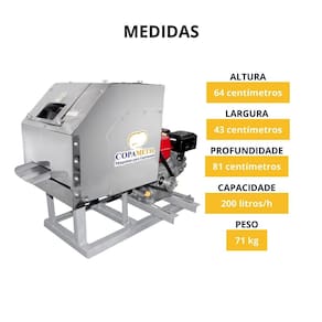 Com o Engenho de Cana C-200 você vai ter praticidade e produtividade, podendo produzir até 200L de garapa por hora.