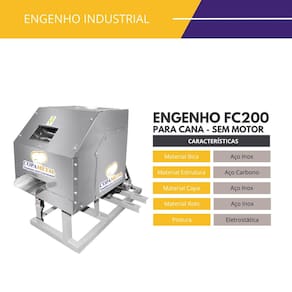 O Engenho Moedor de Cana FC200 Rolo Inox sem Motor da FC2 (Copametal), é ideal para quem já possui motor próprio ou quer acoplar o equipamento a sistemas alternativos. Robusto e confiável, ele é indicado para comércios que produzem caldo de cana em alto volume com controle total sobre o motor e montagem.