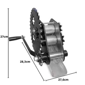 Engenho Moedor de Cana Manual 3 Rolos em Inox FC70  FC2   O Engenho para Cana 70 Manual da FC2 é ideal para quem busca uma solução simples e eficiente para moer cana em pequena escala. Compacto e leve, é perfeito para uso em sítios, feiras, pequenos comércios e até uso doméstico reforçado.   Sua estrutura é reforçada em aço carbono, com bica em aço inox e acabamento com pintura eletrostática, garantindo durabilidade e fácil limpeza. Mesmo sem motor, oferece ótimo rendimento e é fácil de operar manualmente.   Informações sobre o equipamento Peso: 12 kg Capacidade de produção: até 70 litros por hora Motor: não possui Tensão: não se aplica, trata-se de um modelo Manual Consumo Elétrico: não se aplica, trata-se de um modelo Manual   Composição Estrutura: Aço CarbonoMaterial Bica: Aço InoxMaterial Capa: Aço InoxMaterial Rolo: Aço Inox Pintura: Eletrostática   Dimensões do equipamento Altura: 35 cm Largura: 29 cm Profundidade: 58 cmGarantia3 Meses Contra Defeito de Fabricação.