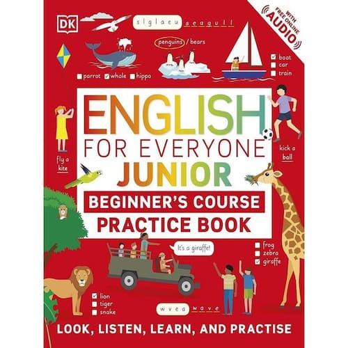 About English for Everyone Junior Beginner's Practice Book Start learning English as a second language with this visually stimulating practice book for children ages 6-9. Accompanying the English for Everyone Junior: Beginner's Course, this beautifully illustrated workbook features an abundance of vocabulary and grammar exercises for children learning English as a foreign language. When it comes to languages, practice really does make perfect! This work book guides young linguistic learners through exercises and activities to consolidate what they've learnt and build confidence in their skills. Making use of a range of both familiar and new exercise mechanisms, this practice book is an invaluable research tool to test the vocabulary and grammar structures taught in the course book. Immerse yourself in this practical ESL learning material, which includes: -Over 1,000 vocabulary and grammar exercises -Lay-flat binding, making the book easier to write in -Extensive accompanying audio resources that can be accessed via the website and the app -The same unit-by-unit structure as the English for Everyone Junior: Beginner's Course, making it the perfect learning accompaniment Puzzled by past tenses? Confused by comparatives? At DK, we believe that language learning doesn't have to be dominated by verb endings and grammar structures! English for Everyone Junior's dynamic and visual approach makes language learning fun, and produces results fast. Although best used to accompany English for Everyone Junior: Beginner's Course, this practice book can also be used independently by children or teachers who are in need of additional beginners-level English practice exercises. Looking for more English language resources for all ages and abilities? English for Everyone sells guides and practice books in over 90 countries, supporting English learning for children, teenagers, and adults all around the world. Covering English speaking, reading, and writing at all levels, this catch-all collection has got you covered, whatever your skillset! Marca: DORLING KINDERSLEY UK