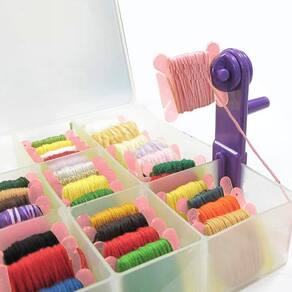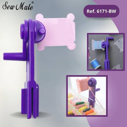 Enrolador de Linhas Fios Lãs e Maedas Sew Mate com Manivela Para evitar bagunça e confusão com seus fios, linhas, lãs e maedas experimente o prático Enrolador de linhas para Bordado com Manivela. Essencial para quem valoriza a organização e precisão em seu trabalho, facilitando o enrolar dos fios e a identificação das cores desejada em cada trabalho.