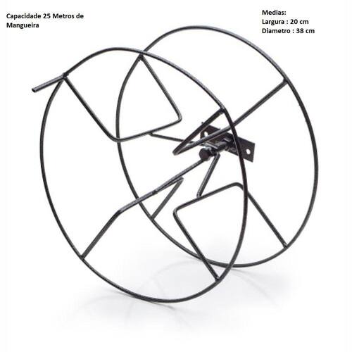 Enrolador de Mangueira Giratorio de Fixar na ParedeCapacidade 25 metros de mangueira de 1/2Medidas: Diâmetro 38 cm e Largura 20 cmProduto excelente para organização do seu quintal pratico para fixar e enrolar a mangueira para que a mesma não fique jogada no quintal depreciando a mesma .