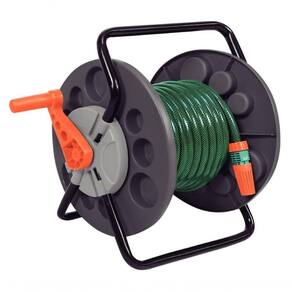 - Capacidade de armazenamento de até 55 metros de mangueira 1/2". Este é apenas um valor de referência, considerando uma mangueira de 1/2". O valor pode variar para mais ou para menos, dependendo do modelo e do diâmetro da mangueira.