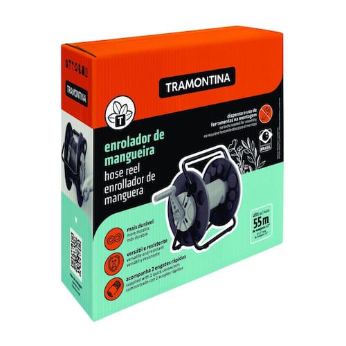 O enrolador de mangueira Tramontina é ideal para que sua mangueira não fique com nós e bloqueie o fluxo de água. Produzido em polipropileno de alta resistência, o enrolador proporciona maior durabilidade. O produto possui ótimo acabamento e tamanho compacto, perfeito para guardar em qualquer espaço da sua garagem. Os enroladores de mangueira Tramontina são acessórios indispensáveis para conservar e facilitar a utilização das mangueiras Tramontina. O enrolador de mangueira pode ser montado e desmontado sem a utilização de ferramentas. Tem capacidade de armazenamento de até 55 metros de mangueira de 1/2".