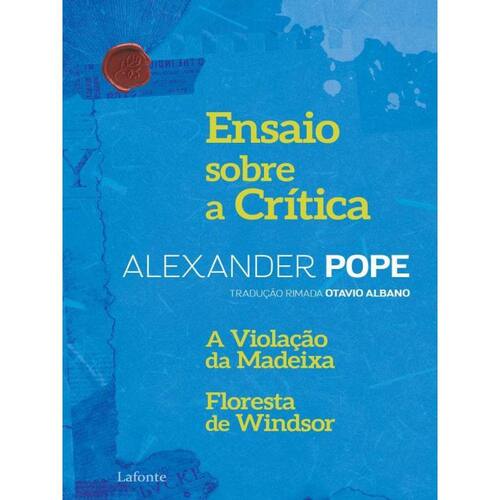 As famosas reflexões de Alexander Pope, considerado o principal poeta inglês do século 18, estão em Ensaio sobre a Crítica. Depois de Shakespeare, Pope é o segundo nome em relevância no Oxford Dictionary of Quotations, obra que lista as citações mais importantes da cultura inglesa em todos os tempos. Ean: 9786558702580