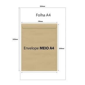 Tamanho: 176mm x 250mm ideal para documentos Meio A4 Quantidade: 125 unidades Cor: Pardo Tipo de Fechamento: Liso, sem janelas Uso: Perfeito para envio de documentos, cartas e outros papéis Gramatura: Alta resistência e durabilidade