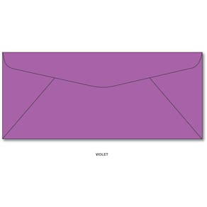 Esses envelopes Violet #10 medem 4 1/8" x 9 1/2". Os envelopes são feitos de papel de 24 libras. Nossos envelopes violetas são ótimos para caber em nossos folhetos com três dobras, papéis timbrados e nossos cartões de notas comerciais #10!