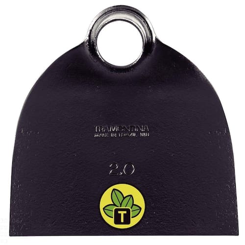 A enxada 2.0 Tramontina em aço sem cabo é a escolha certa para você cavar ou capinar terra com maior agilidade e facilidade. Produzida em aço carbono especial de alta qualidade, é altamente resistente e durável. Ela é muito leve e deixa o seu trabalho ainda mais simples e prático. - A enxada é temperada em todo o corpo da peça, proporcionando maior resistência e menor desgaste durante o uso.- Fabricada em aço carbono especial de alta qualidade.- Recebe pintura eletrostática a pó, que tem uma melhor apresentação visual e maior proteção contra oxidação.- A tinta utilizada na pintura é isenta de metais pesados na sua composição, o que minimiza o impacto ambiental.- A lâmina possui tamanho 2.0 e sua afiação é feita em máquinas automatizadas, proporcionando excelente durabilidade do fio.- Possui olho de 38 mm de diâmetro.- A enxada é leve, que gera menos esforço físico do usuário e proporciona maior produtividade.- Lâmina com ângulo intermediário em relação ao cabo: torna-se ideal para revolver o solo de forma superficial, promover pequenos sulcos e incorporar adubos. Na construção civil, facilita o preparo de argamassas e outras misturas. Características Gerais EAN13 7891117001522 DUN14 17891117001529 NCM 8201.30.00 Peso Líquido 0,5860 kg. Peso Bruto 0,6190 kg. Metragem 0,000960 m³. Dimensões Embalagem (Compr. X Larg. X Alt.) 200x 205x 39 mm. Dimensões Produto (Compr. X Larg. X Alt.) 197x 205x 42 mm. Cor 1 000000 Hexa Observações - A enxada é utilizada para cavar e revolver o solo, incorporando adubos e corretivos. Ainda auxilia na modelagem de canteiros e na capina de ervas daninhas.- Para descarte dos produtos e embalagens siga as orientações de reciclagem vigentes.