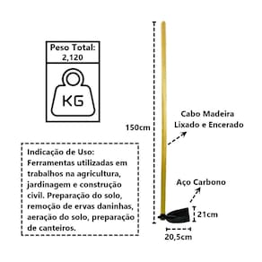 Enxada Catarina Larga em Aço Cabo Madeira Jardim Horta 150cm
