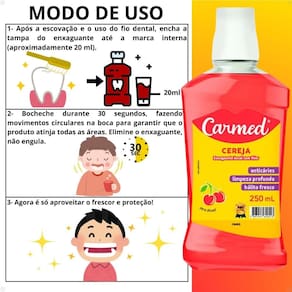 O Enxaguante Bucal Carmed Cereja oferece uma experiência única de frescor e cuidado para sua boca, combinando a proteção bucal com o sabor doce e agradável de cereja. Sua fórmula com flúor auxilia na prevenção de cáries, combate a placa bacteriana e mantém o hálito fresco por mais tempo. Ideal para o uso diário, o produto não contém álcool, proporcionando uma sensação suave e sem ardência. A embalagem de 250ml é prática, perfeita para o uso em casa ou para levar na bolsa. Com o Enxaguante Bucal Carmed Cereja, você garante uma boca limpa, saudável e com um frescor duradouro.