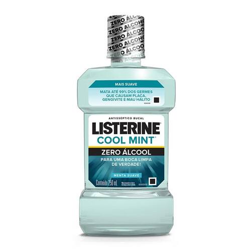 Listerine Cool Mint Zero Álcool é um enxaguatório bucal de uso diário, com eficácia clinicamente comprovada. Utilizado após a escovação, elimina até 99% estudo in vitro das bactérias que causam a placa e atua em lugares onde a escovação e o fio dental não alcançam. Benefícios: Possui fórmula sem álcool; Ajuda a eliminar as bactérias que causam mau hálito, gengivite e placa. Modo de usar: 1 Deve ser utilizado duas vezes ao dia, depois de escovar bem os dentes e de usar o fio dental; 2 Use 20ml por enxágue; 3 Bocheche por 30 segundos; 4 Use sem diluir e não engula. Precauções: Não utilize o produto em crianças menores de 6 seis anos de idade. Composição: Óleos essenciais específicos de Listerine; Thymol, Eucalyptol, Menthol, Methyl salicylate. Proc. 25351.463254/201718 Ean: 7891010973902
