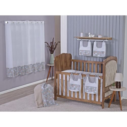 Enxoval de Bebe Kit de Berço Americano Cortina Algodão Menino Menina 9 Peças Cor: Safari cinza Seus filhos merecem todo conforto e aconchego possível