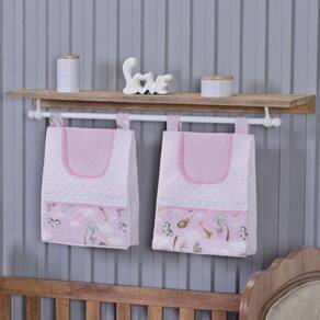 Contém na embalagem: 1 lençol com elástico 1,30m comp x 0,70m larg x 0,15m alt 1 lençol sem elástico 1,35m comp x 1,05m larg 1 fronha 40cm comp x 30cm larg 1 manta dupla face 1,15m comp x 0,95m larg manta de microfibra na cor bege de um lado e tecido de algodão do outro 2 porta fraldas 43cm alt x 32cm larg x 10cm prof para ser pendurado em varão em móveis ou na parede 2 porta fraldas com laço 38cm alt x 32cm larg x 10cm prof para ser pendurado em varão ou no berço 1 cortina 2,70m larg x 1,60 alt 2 partes de 1,35m larg