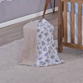 Contém na embalagem: 1 lençol com elástico 1,30m comp x 0,70m larg x 0,15m alt 1 lençol sem elástico 1,35m comp x 1,05m larg 1 fronha 40cm comp x 30cm larg 1 manta dupla face 1,15m comp x 0,95m larg manta de microfibra na cor bege de um lado e tecido de algodão do outro 2 porta fraldas 43cm alt x 32cm larg x 10cm prof para ser pendurado em varão em móveis ou na parede 1 cortina 2,70m larg x 1,60 alt 2 partes de 1,35m larg