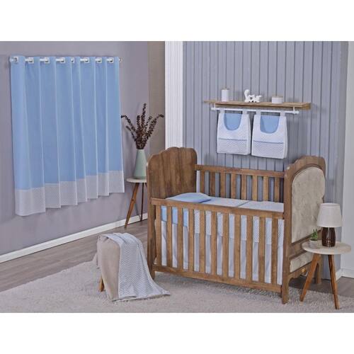 Enxoval de Bebe Kit de Berço Americano Cortina Algodão Menino Menina 7 Peças Cor: Chevron azul bebê Seus filhos merecem todo conforto e aconchego possível