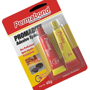 DESCRIÇÃO O Epóxi Cola 10 Minutos Profissional E Domestico 40g Permabond cola pequenas superfícies de materiais porosos, lisos ou irregulares como azulejos, madeira, vidro, concreto, borracha vulcanizada, fibras naturais, pedras, a maioria dos plásticos rígidos, metais e outros materiais. Epóxi Líquido. DETALHES BI COMPONENTE TRANSPARENTE COLA EM 10 MINUTOS ESPECIFICAÇÕES Contém 1 endurecedor de 20g e 1 resina de 20g. CARACTERÍSTICAS Secagem ocorre em 10 minutos. Obtém-se a cura final em aproximadamente 8 horas.AS IMAGENS SÃO MERAMENTE ILUSTRATIVAS