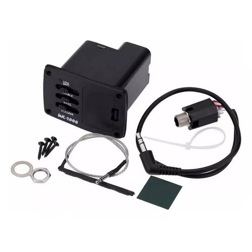 Especificações: Baixo: +/-12db a 100Hz Treble: +/-12dB em 10 KHz Alimentação: 9 V bateria AIkaline Vida Útil da bateria: Mais de 350 horas Pickup: UK-2000 Piezo cabo pick-up Cor do item: Preto Tamanho do artigo: 645 cm/2.41.6 2in Item peso: 58g/2 oz Tamanho do pacote: Aprox. 1176 cm/4.32.8 2.4in Peso da embalagem: 76g/2.7 oz