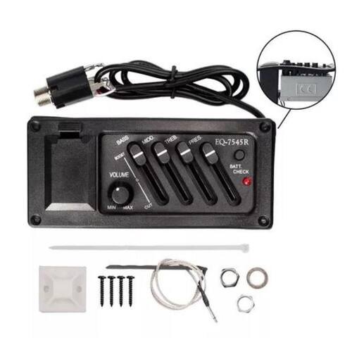O Equalizador Para Violão Eq-7545R é perfeito para músicos que desejam ajustar e melhorar o som do violão de forma prática e eficiente. Com controle de volume, grave, médio, agudo e presença, ele oferece total controle sobre as características sonoras do instrumento.