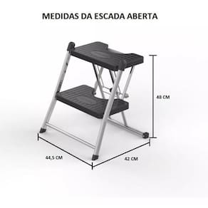 Escada Alcance 2 Degraus Dobrável Cromada Anodilar - Especificações TécnicasEstrutura em aço-carbono com banho em cromo;