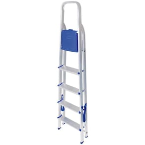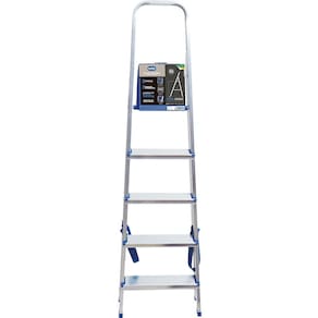 As Escadas da Metalurgica Mor sao fabricadas de acordo com a nova portaria do INMETRO N 615 e 616, o que garante a certeza de um excelente produto. Agora mais altas e reforcadas, com capacidade para ate 120 kg , nossas escadas sao leves, dobraveis e faceis de guardar. Ideais para pequenos consertos ou para alcancar lugares mais elevados no uso domestico. Produzida em aluminio, que garante maior leveza e durabilidade, mesmo em areas litoraneas. Tipo de material -composicao-: Estrutura em tubos e chapas de aluminio, pecas plasticas em polipropileno. Caracteristicas do produto: Altura ate a plataforma 1,06 m. Capacidade aproximada: 120 kg.