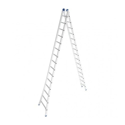 É super resistente e tem um prático sistema de articulação, vem com sapatas de borracha antiderrapantes e roldanas de polipropileno que facilitam seu deslize sobre a parede na extensão e retração da escada.