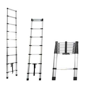 Escada telescópica extensível com 8 degraus.