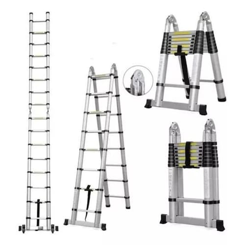 Escada Alumínio Telescópica V Multifuncional 5m 16 Degraus Escada Alumínio Forte Profissional Telescópica em V Multifuncional 5 Metros 16 Degraus para Pintura, Limpeza de Janelas.