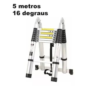 - Peso suportado: 150kg - Peso aproximado: 18kg - Número de degraus: 16 degraus - Extensível: até 5 metros - Dimensões fechada a x c x l : 93cm x 49cm x 19cm - Dimensões no formato tipo a: a x c x l : 250cm x 200cm x 49cm - Dimensões esticada: a x c x l : 500cm x 49cm x 19cm - Modelo: st50012 - Marca: siga tools - nakasaki Marca: Não Informado