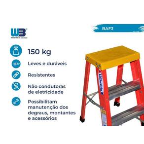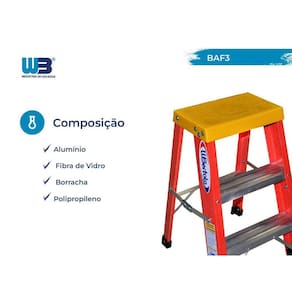 *Não condutora de eletricidade Altura Máxima da Escada: 60 Ambiente Principal: Área de Serviço Antiferrugem: Sim Certificado: Não Cor da Estrutura: Laranja Cor dos Degraus: Prata Cor dos Pés: Preto Cor Predominante: Laranja Degraus Antiderrapantes: Sim Degraus Divididos Em: Possui Apenas 01 Sequência de Degraus Dobrável: Não Função: Profissional Itens Inclusos: Nenhum Largura da Escada: 37 Largura do Degrau: 31 Material da Estrutura: Fibra de Vidro Material dos Pés: Borracha Número de Posições: 01 Origem do Produto: Nacional Pés Antiderrapantes: Sim Peso: 3.5 Possui Limitador de Abertura: Sim Profundidade do Degrau: 7.75 Quantidade Total de Degraus: 03 Recomendações de Uso, Manutenção e Limpeza: Orientações Gerais para Uso, Transporte e Conservação das Escadas Orientação para Uso: 1 – Utilizar as escadas sobre piso firme e nivelo, seja cuidadoso em pisos escorregadios; 2 – Não utilizar nenhum objeto para aumentar a altura da escada; 3 – Nunca use a escada como andaime; 4 – Use cinto de segurança para subir ou descer da escada enquanto tiver trabalhando; 5 – Não exceder 60 cm do topo da escada; 6 – Utilize a escada no ângulo apropriado, 75º; 7 – Verifique se as catracas estão devidamente travadas antes de subir; 8 – Observar o limite de abertura – Faça uma inspeção visual antes do uso; 9 – Para escada extensiva o deslizamento deve ser leve e suave tanto na subida, quanto na descida; 10 – Não é permito reparo nos montantes da escada; 11 – Não exceder a carga máxima total especificada para a escada; 12 – Escadas tesouras: Não pisar na plataforma sem alça de apoio e certificar de que a escada esteja totalmente aberta antes do uso; 13 – Os EPI’s a serem utilizados, deverão seguir as Normas de Segurança da empresa; 14 – Não desça ou suba as escadas de costas para ela; ORIENTAÇÃO PARA TRANSPORTE: 1 – Transporte sua escada sobre apoio de borracha ou plástico; 2 – Amarre firmemente a escada para evitar atritos e impactos; 3 – Escadas com até 4 metros poderão ser transportadas por uma pessoa, devendo ser mantida na parte dianteira. Escadas com mais de 4 metros deverão ser transportadas por duas pessoas; 4 – Tome cuidado com choques em linhas energizadas ao transportar escadas. ORIENTAÇÃO PARA MANUTENÇÃO: 1 – Reparos e manutenção nos montantes só poderão ocorrer sob orientação e após um parecer do fabricante; 2 - A escada deverá ser reparada se apresentarem quaisquer defeitos indicados a seguir: Cinta de apoio danificada ou solta; Sistema de travamento, roldana, guias, sapatas com trincas ou danificadas, mola solta ou lingüeta quebrada; Tirantes e parafusos folgados; Suporta Até (kg): 150 Tipo de Certificado: ISO 9001 Ean: 7898043624207