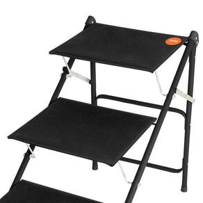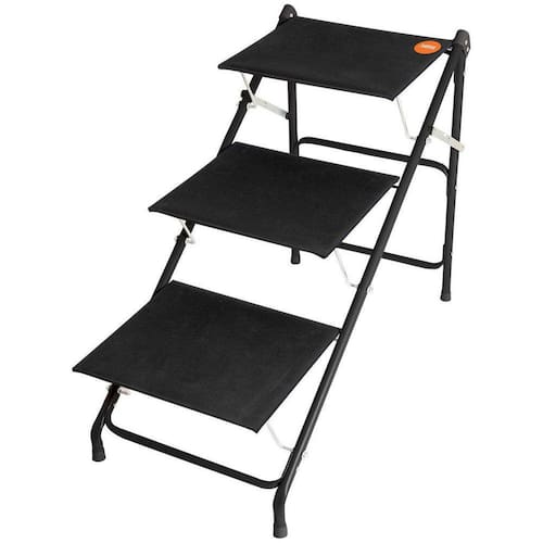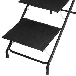 Com um design resistente e durável, a escada possui estrutura em aço carbono esmaltada com tinta epóxi, garantindo a sua qualidade e segurança. Os degraus são revestidos com tecido 80% PVC e 20% poliéster, proporcionando aderência e conforto para o seu pet.