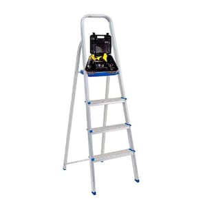 Dobrável e fácil de guardar, a Escada de Alumínio 4 Degraus da Mor é ideal para pequenos consertos e para alcançar lugares mais elevados no uso doméstico e também em apartamentos.