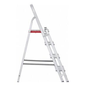 Esta escada de aluminio e ideal para pequenos reparos, pintura e trabalhos externos, suportando uma carga maxima de 120 kg. Com 4 degraus antiderrapantes de 160 mm de largura e altura entre eles de 22 cm, oferece seguranca e estabilidade para o usuario. A escada tem altura total aberta de 1,30 m e dobrada de 1,14 m, facilitando o armazenamento. O design inclui sapatas antiderrapantes e uma trava de seguranca, garantindo maior protecao durante o uso. O material de aluminio, produzido pela propria empresa, assegura durabilidade e leveza, pesando apenas 6,90 Kg. Este produto e certificado pelo Inmetro, atendendo aos requisitos de seguranca. Ideal para uso domestico e profissional, proporciona conforto para quem necessita de estabilidade por periodos prolongados. Marca: Não Informado