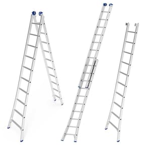 Dimensões: Dimensões escada simples: Altura: 302 cm Largura: 59 cm Profundidade: 6,5 cm Dimensões da escada aberta: Altura: 295 cm Largura: 59 cm Profundidade: 182 cm Dimensões escada extensível: Altura: 505 cm Largura:59 cm Profundidade: 11 cm Peso: 10,15 kg