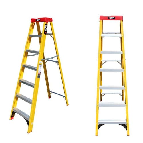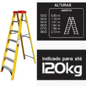 Não condutora de eletricidade Escada de fibra tesoura prática 6 degraus efp9901 Escada de fibra - tesoura prática - 6 degraus - btf Cada vez mais conhecida no mercado nacional como a escada do eletricista a nossa tesoura de fibra prática vem colhendo frutos por seu excelente projeto. Não condutora de eletricidade. Confortável e segura com seus degraus largos e antiderrapantes, sapatas de borracha e sistema de fechamento antibeliscão. ela ainda tem um topo multiuso capaz de apoiar todas as ferramentas necessárias para os serviços elétricos gerais. Além disso, possui de 12 meses, suporta até 120kg e está disponível de 3 a 8 degraus. Esta é a tesoura de duplo acesso robusta. Indicada para uso comercial e industrial pesado. Ela é mais forte e estável que sua irmã tesoura prática, devido aos seus dois montantes largos e sapatas enormes. Suporta até 150kg e em seu maior tamanho 17 degraus seu alcance chega a 4,89m. Então já sabe: para trabalhos elétricos de pequeno, médio ou grande porte, use as escadas de fibra tesoura botafogo Marca: Não Informado