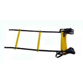 Escada De Treino Agilidade Circuito Funcional 10 Degraus - Preto/Amarelo A Escada para Treinamento é um acessório excelente para treinamentos esportivos e trabalhos dentro de academias. Auxilia no desenvolvimento de reflexo, agilidade, força e coordenação motora, explorando as habilidades e alta performance através de exercícios rotineiros específicos. Hastes manufaturadas em PVC na cor amarela para facilitar a visualização em qualquer campo, com mobilidade dos degraus. - Utilizado para atividades esportivas que visem aprimorar a agilidade, velocidade e coordenação. - Possui 10 degraus ajustáveis com 4,5 metros e 4 pontos de fixação. - Dobrável, facilita na montagem/desmontagem e transporte. Marca: Não Informado