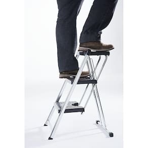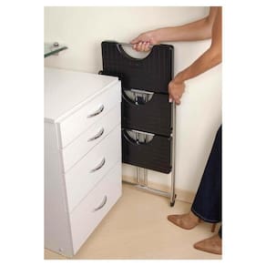 Beleza e segurança compõe a escada mais elegante e confortável do mercado. Quando fechada, sua espessura é de 7 cm, permitindo que ela seja guardada em armários ou lugares compactos.