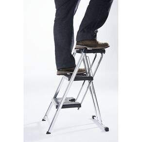 Escada Dobrável Cromada 3 Degraus Compacta 120Kg - Anodilar